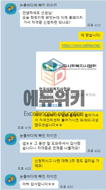 사회복지사2급 자격증을 취득 희망하셨던 학습자님이었습니다.