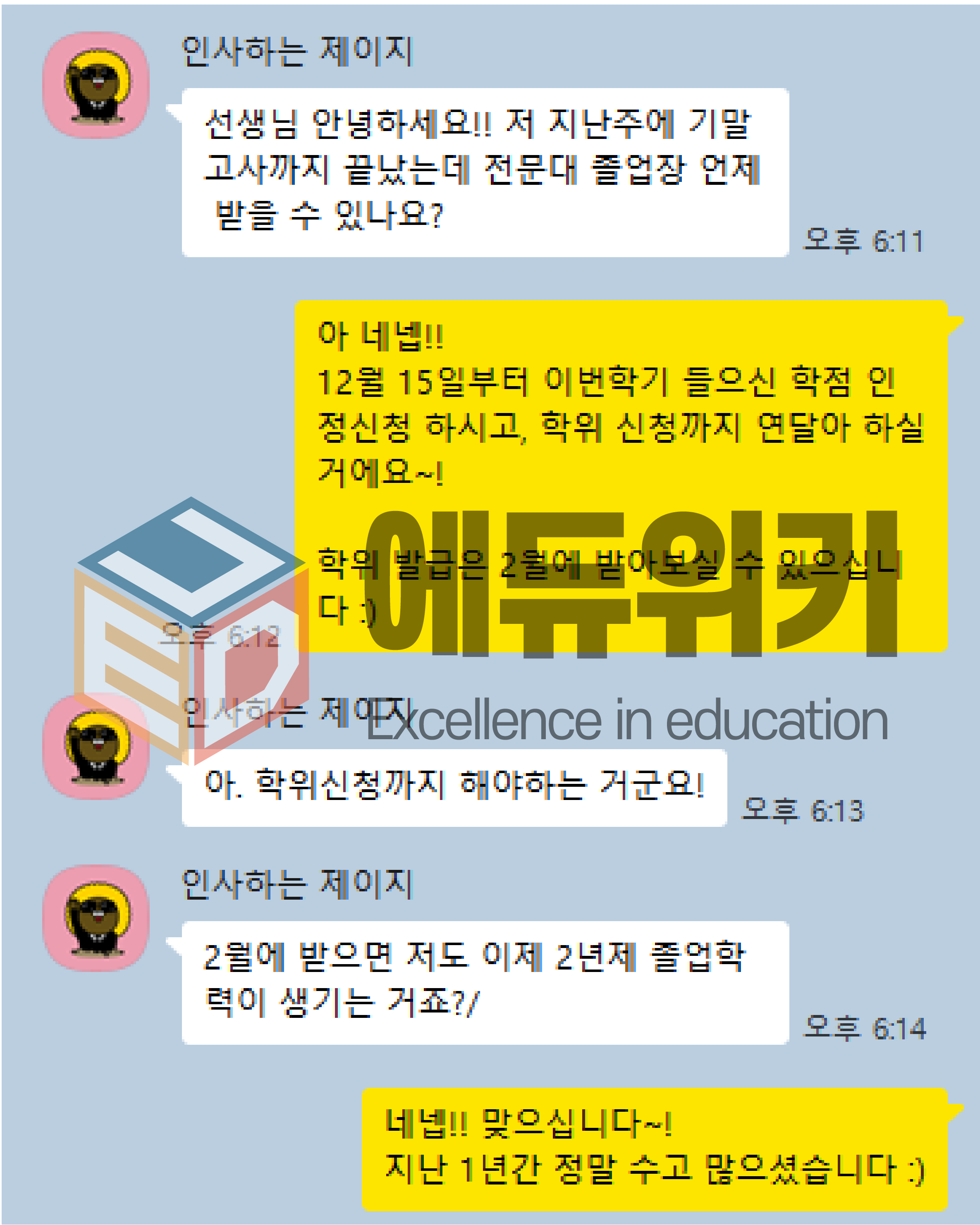 30대 직장인, 고졸에서 경영전공 전문학사 1년만에 취득!