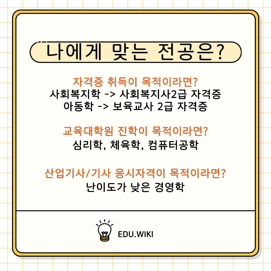 이렇게 다양한 학점은행제 전공들 중 본인의 진로 및 목적에 가장 잘 맞는 것이 무엇인지