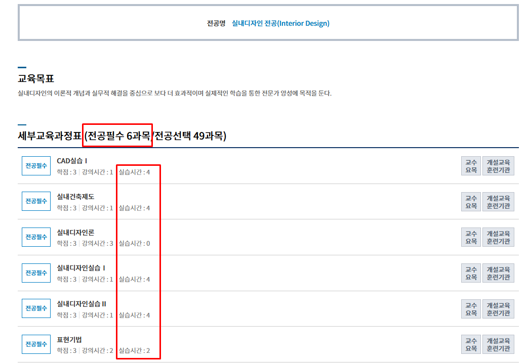 오늘 알아보는 실내디자인 전공 역시 "전공필수 과목이 실습"으로