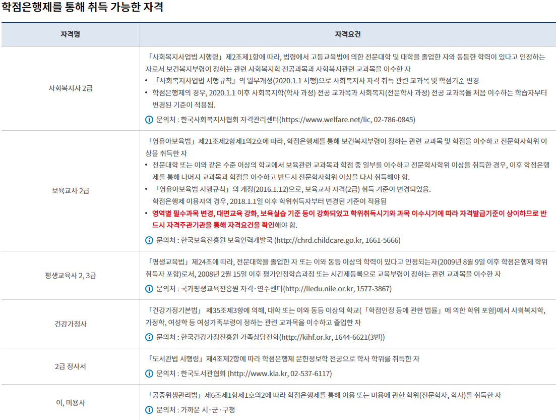 보통 산업기사·기사 / 사회복지사 / 보육교사 등