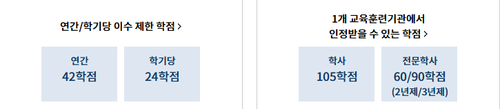 1학기 24학점 / 1년에 42학점으로 제한됩니다.