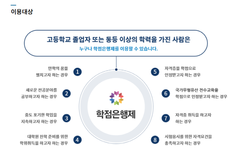 자격증 취득, 시험 응시자격, 학력개선, 편입 등을 위해