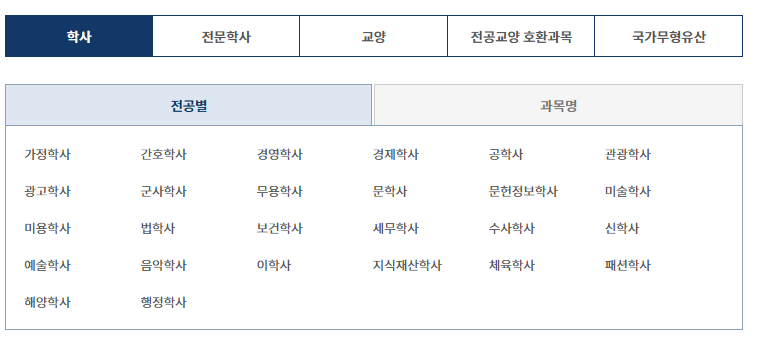 오늘은 학점은행제 전공종류에 대해 알아보겠습니다.