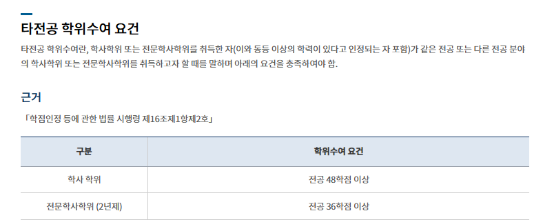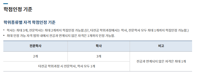 - 전문학사 타전공, 학사학위 타전공 모두 전공자격증 1개