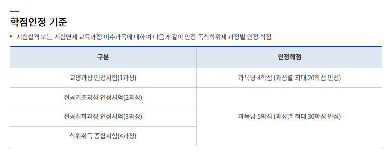 · 1단계: 1과목 당 4학점, 최대 20학점 (5과목)