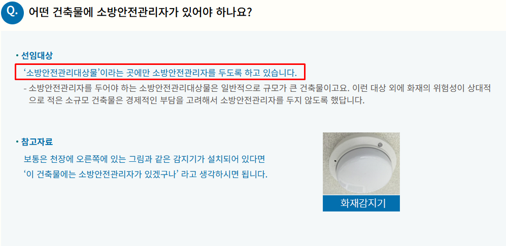 소방안전관리자는 특정소방대상물(건물, 시설 등)의