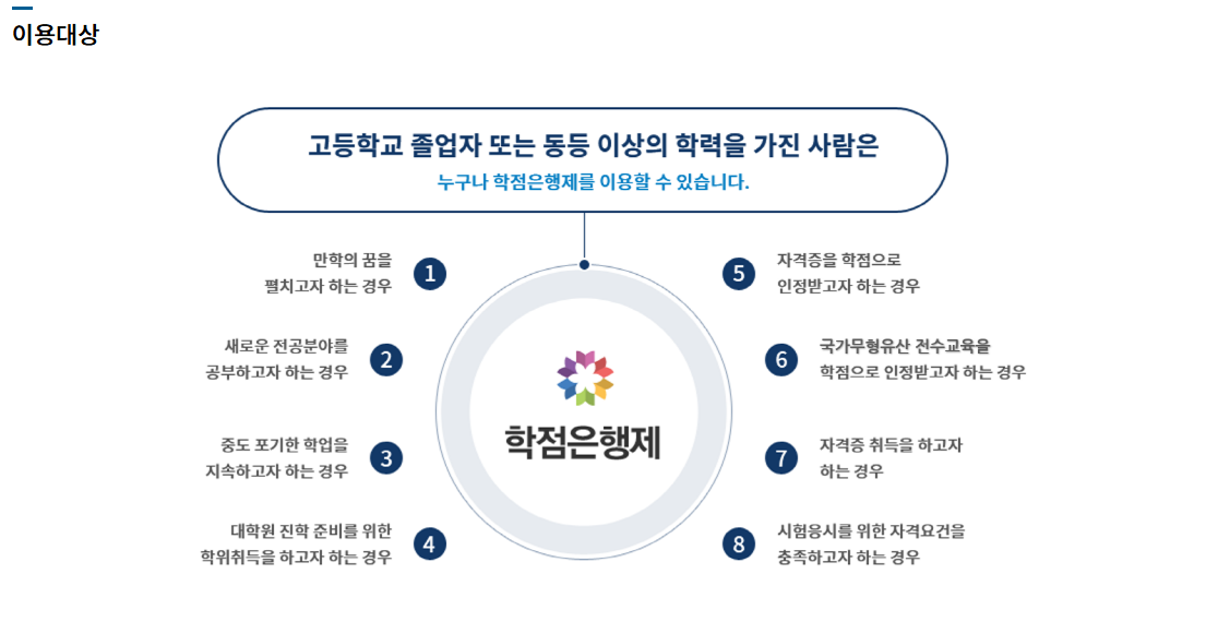 학점은행제는 교육부가 주관하고 있는 평생교육제도로