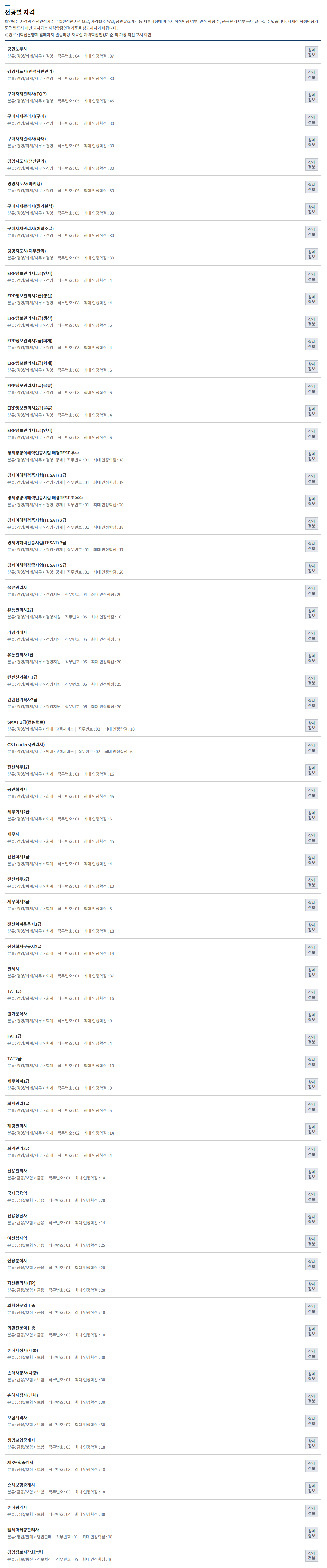 전공자격증 1개까지만 학점으로 인정됩니다.