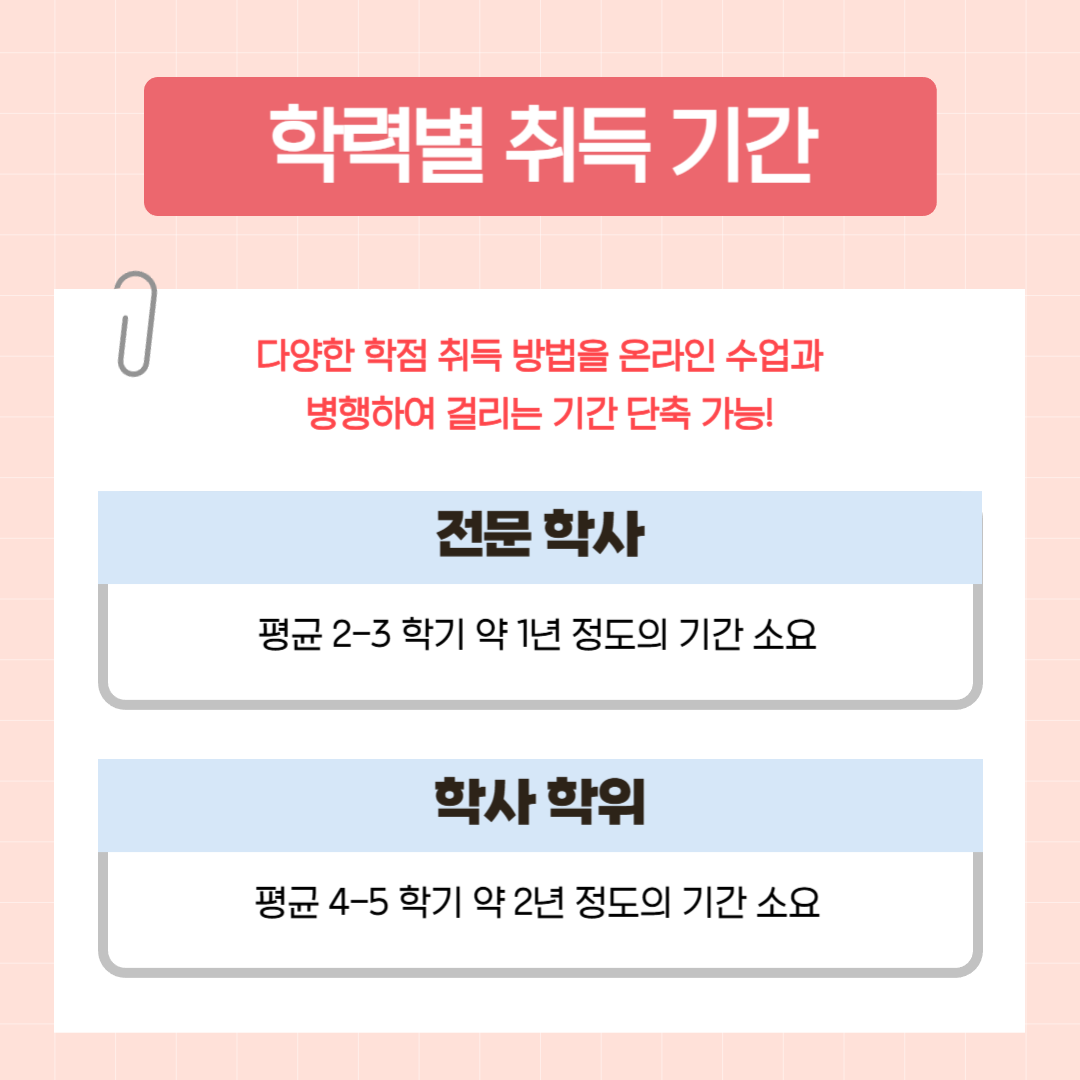 전문학사는 1년, 학사학위는 2년으로 취득이 가능하여