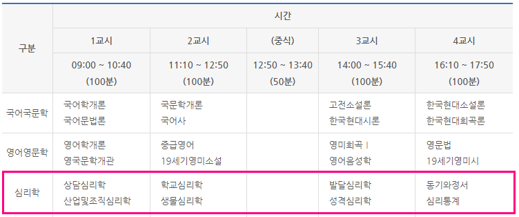 전공선택 과목 또한 온라인으로 개설되어 있지 않은 과목들도 많기 때문에 대부분 심리학으로 진행하고 있습니다.