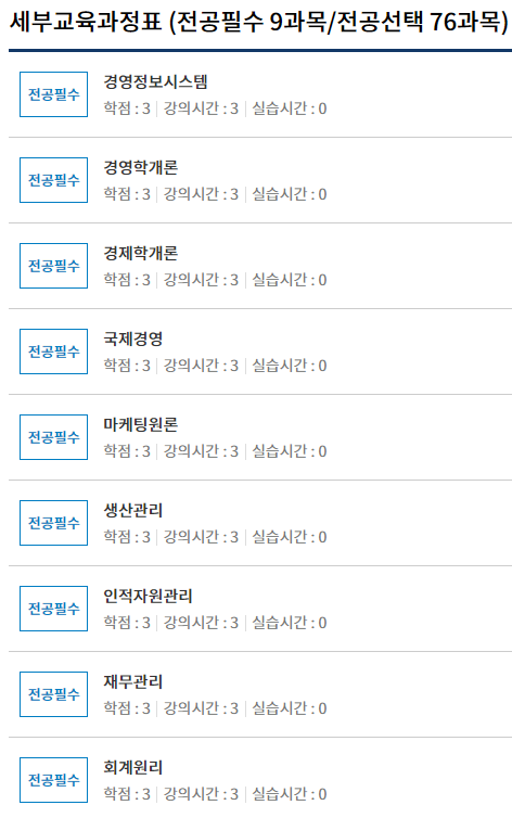 * 같은 전공이라도 학사/전문학사 과정에 따라 전공필수 과목이 다르며,